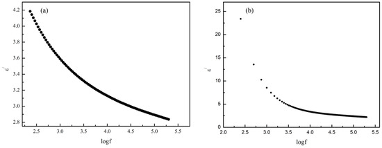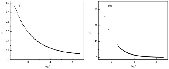 Variations in the real part of dielectric permittivity with frequency for the investigated samples are shown in Figure 8. The frequency dependence of dielectric loss is presented in Figure 9.