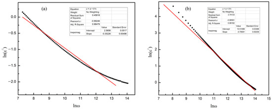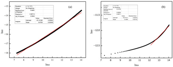 In this context, A represents a temperature-dependent constant, and m represents the negative exponent of the power function of the angular frequency. The experimental measurements showcased in this study facilitated the determination of the parameter m and the potential barrier height by analyzing the slope of the linear function logε// = f(logf) (Figure 11).