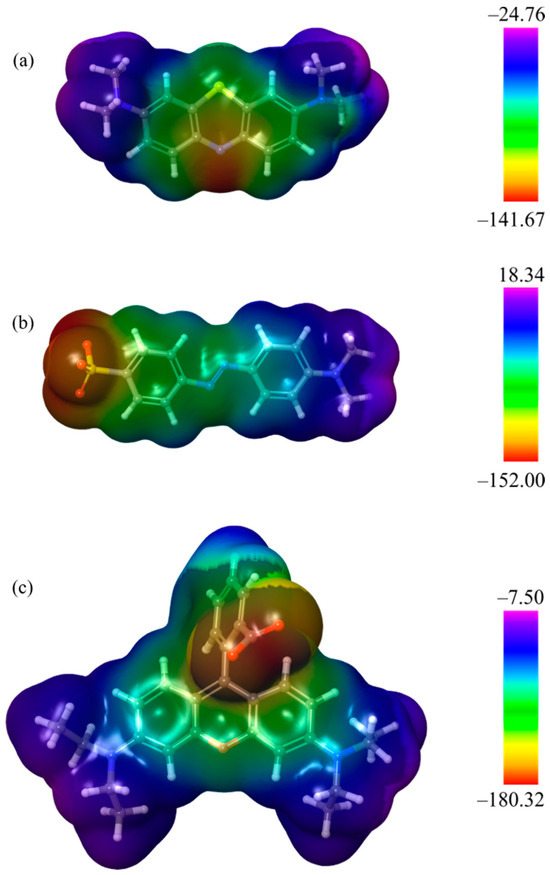 Global reactivity parameters of studied dye molecules have been summarized in Table 3, while MEP surfaces of MB, MO, and RB have been presented in Figure 17.