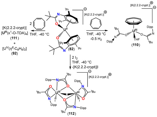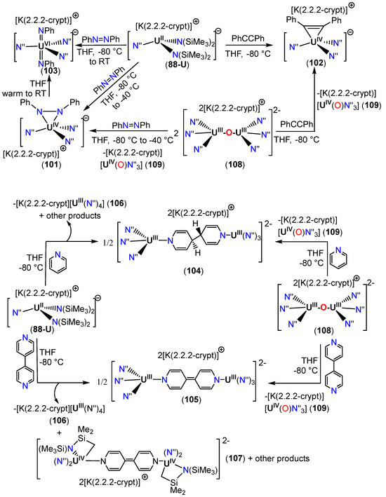 3.1. Isolation of U(II) and U(I) Complexes and Their Reactivity