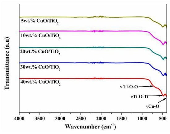Infrared spectra of the wt.% CuO/TiO2 samples.