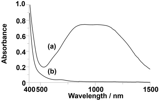 Vis/NIR spectra of (a) V18 and (b) Cu2V16 in acetonitrile. The concentration of the samples was 0.2 mM. The broad band around 600–1500 nm is due to intervalence charge transfer.