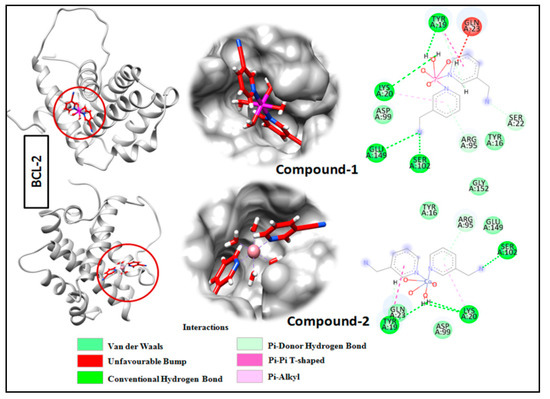 Figure 15. Docking analysis results for compounds 1 and 2 with BCL-2 receptor.