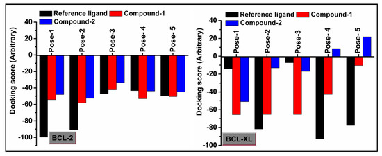 Figure 17. Docking scores of compounds 1 and 2 with BCL-2 and BCL-XL receptors.