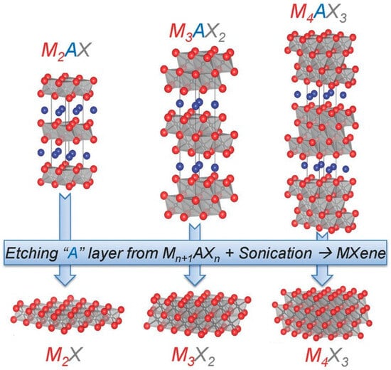Structure of MAX phases and the corresponding MXenes. Reproduced with permission [29]. Copyright 2013, John Wiley and Sons.