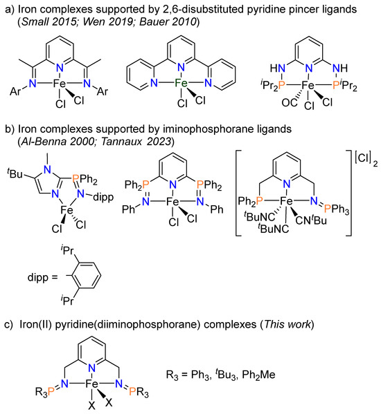 Examples of iron(II) pincer complexes and iminophosphorane iron(II) complexes [1,2,3,7,8].