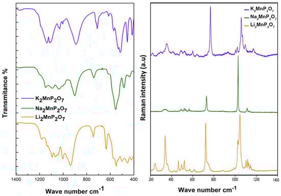 2.2. Spectroscopic Evaluation of A2MnP2O7 (A = Li, Na, K)