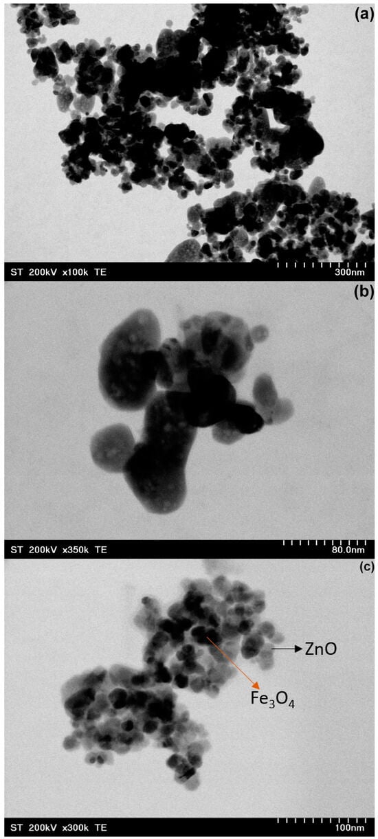 The synthesis of Fe3O4 nanoparticles and their subsequent decorating with ZnO:V nanoparticles were the two steps involved in the synthesis of the Fe3O4-ZnO nanocomposites.