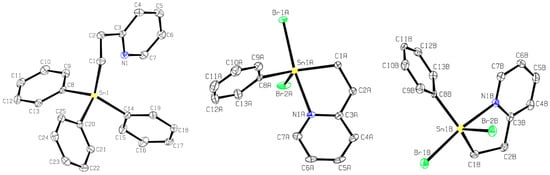 The intermediate 8 was prepared using bromination of 2, as shown in Scheme 2. After recrystallization, a white-colored solid was recovered with an 82% yield. The 119Sn NMR resonance (CDCl3) of 8 at −182.7 ppm is shifted >70 ppm upfield from 2, and almost 40 ppm from 7 (Table 1), as reported by Molloy et al. [12].