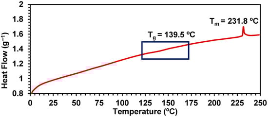 DSC analysis of the semi-crystalline polymer 15 prepared at a 2 mol% loading of catalyst (Figure 7) shows a weak, reversible Tg at 139.5 °C and a stronger reversible melting temperature observed at 231.8 °C.