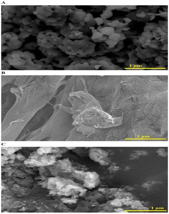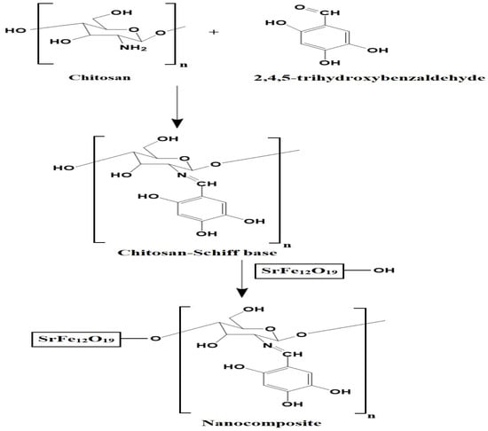 2.1. Characterization of the Chitosan–Schiff Base–SrFe12O19 Nanocomposite