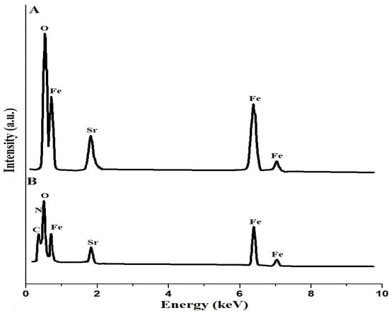 3.3. Functionalization of Strontium Ferrite Nanoparticles with Novel Chitosan–Schiff Base Ligand