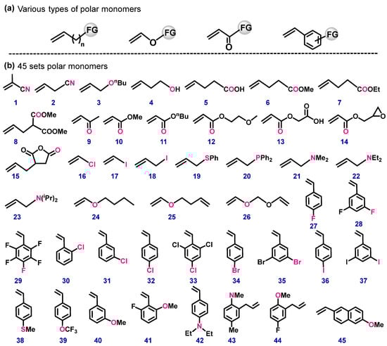 Analogously, the favorable insertion behaviors of the other 29 polar monomers (17–45) were calculated using DFT, with the results listed in Tables S4 and S5.