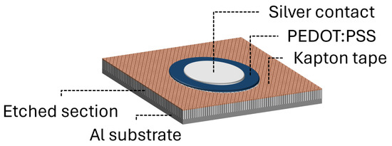 Schematic of the PEDOT:PSS cathode–aluminium etched anode ready for electrochemical analysis.