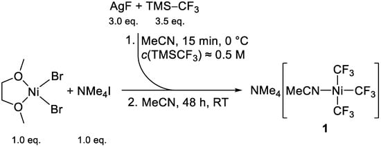 3.5.2. Preparation of (NMe4)[Ni(CF3)3(MeCN)] (1, Refined Procedure)