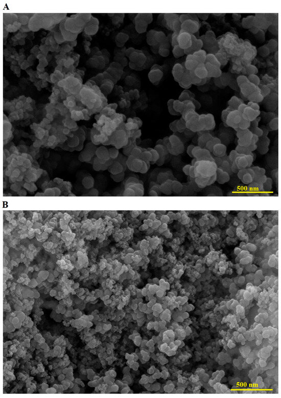FE-SEM analysis of the SG (A) and SA (B) products.