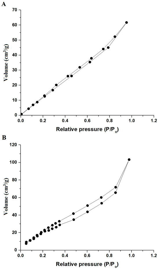 N2 adsorption-desorption analysis of the SG (A) and SA (B) products.
