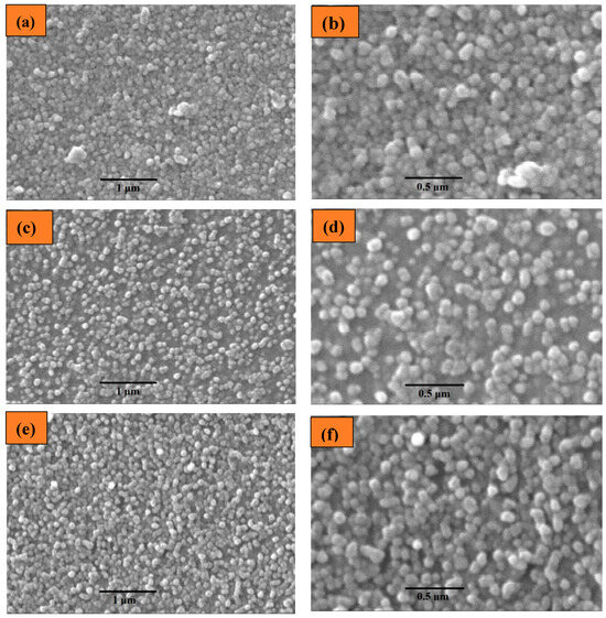 Figure 3 shows the scanning electron microscopy (SEM) images of the ZnO/Zn/ZnO heterostructure of the as-deposited thin film in comparison with annealed thin films. The annealed samples have a smooth surface morphology compared to the as-deposited thin films. However, the surface smoothness is disturbed by the higher annealing temperature. Moreover, the average particle size also has a great impact on the annealing temperature. Table 1 lists the average particle size calculated for all the thin films along with the annealing temperature.