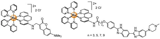 - Hara, D.; Umehara, Y.; Son, A.; Asahi, W.; Misu, S.; Kurihara, R.; Kondo, T.; Tanabe, K. Tracking the oxygen status in the cell nucleus with a Hoechst-tagged phosphorescent ruthenium complex. ChemBioChem 2018, 19, 956–962. [Google Scholar] [CrossRef]