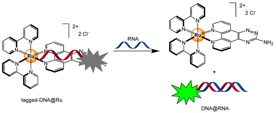 - Li, R.-T.; Liang, Z.; Li, M.-C.; Tan, Y.; Xie, B.-P.; Duan, W.-J.; Ning, C.-T.; Chen, J.-X.; Sun, B. Speedy, specific, synchronous sensing platforms with ruthenium complexes for multiplexed microRNA detection. Inorg. Chem. 2018, 58, 15126–15137. [Google Scholar] [CrossRef] [PubMed]