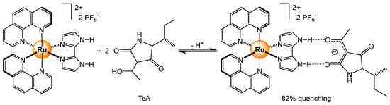 - Quílez-Alburquerque, J.; García-Iriepa, C.; Marazzi, M.; Descalzo, A.B.; Orellana, G. Interaction of a 1,3-dicarbonyl toxin with Ru(II)-biimidazole complexes for luminescence sensing: A spectroscopic and photochemical experimental study rationalized by time-dependent density functional theory calculations. Inorg. Chem. 2022, 61, 328–337. [Google Scholar] [CrossRef] [PubMed]