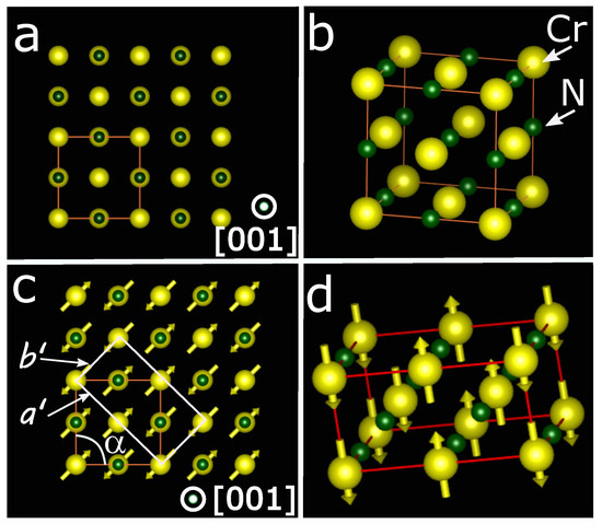 - Filippetti, A.; Hill, N.A. Magnetic stress as a driving force of structural distortions: The case of CrN. Phys. Rev. Lett. 2000, 85, 5166. [Google Scholar] [CrossRef]