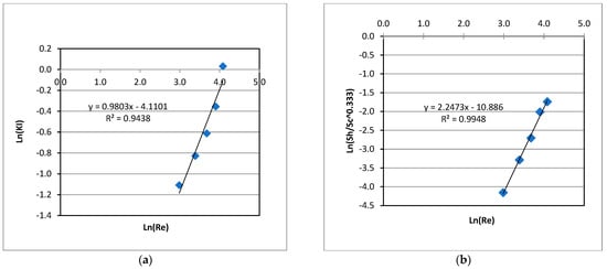 The benefit of the correlation of KI with Re in Equation (5) is that it can be used to estimate the first-order rate constant for a batch La(III) adsorption system at varied RPMs, which is not necessary to be the same as those in the present study, as long as it is operated at a Reynolds number within the range of the Reynolds numbers used in the experiments to generate data for this correlation. It is important to note that when comparisons are made among results from various reports in the literature, they should be under a similar fluid dynamic condition, i.e., the Reynolds number, which dictates the mass transfer rate of the adsorbate from liquid to solid adsorbent, and, hence, affects the adsorption rate. The same RPM may not translate to the same Reynolds number and the fluid dynamic condition if the shaking stroke and the adsorbent particle size are much different. Consequently, the comparisons may not be precise and appropriate.