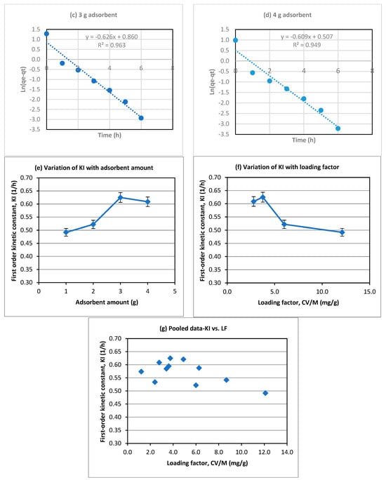 KI values. The mass transfer was improved significantly at higher speeds of 100–150 RPM, leading to more adsorption and higher adsorption rates, resulting in higher first-order rate constants,