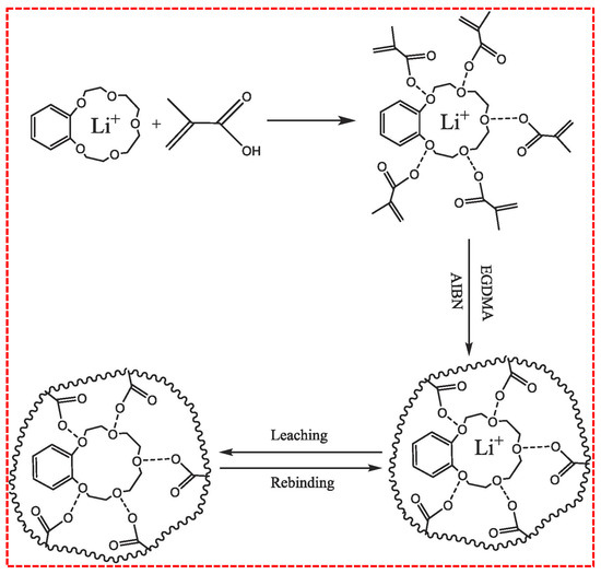 - Zhi, K.; Duan, J.; Zhang, J.; Huang, L.; Guo, L.; Wang, L. Progress and Prospect of Ion Imprinting Technology in Targeted Extraction of Lithium. Polymers 2024, 16, 833. [Google Scholar] [CrossRef]