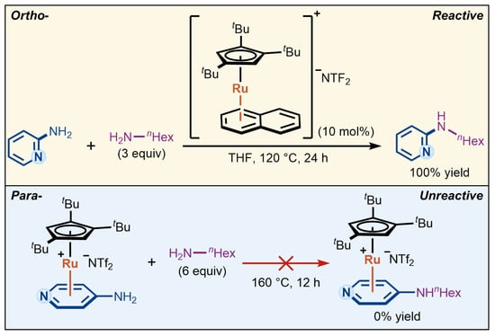 Ortho–para reactivity difference in Ru-catalyzed amination of aminopyridines via η6-coordination [18].