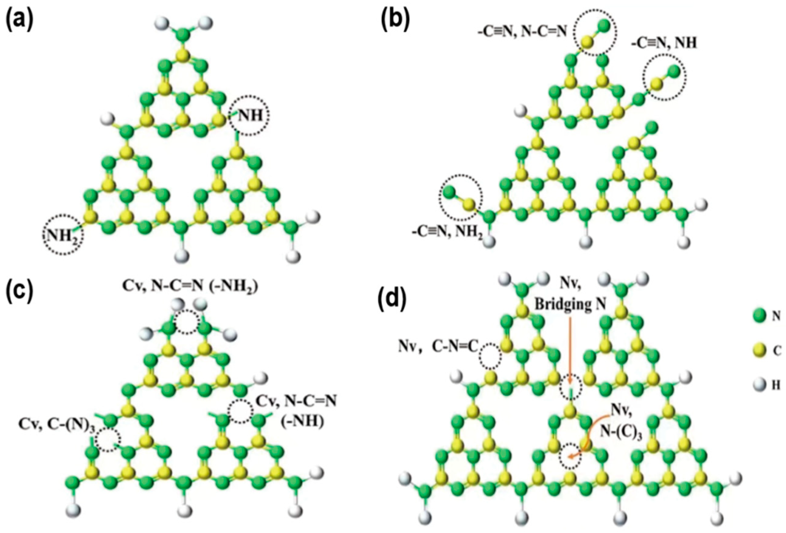 - Tan, J.; Tian, N.; Li, Z.; Li, J.; Yao, X.; Vakili, M.; Lu, Y.; Zhang, T. Intrinsic defect engineering in graphitic carbon nitride for photocatalytic environmental purification: A review to fill existing knowledge gaps. Chem. Eng. J. 2021, 421, 127729. [Google Scholar] [CrossRef]