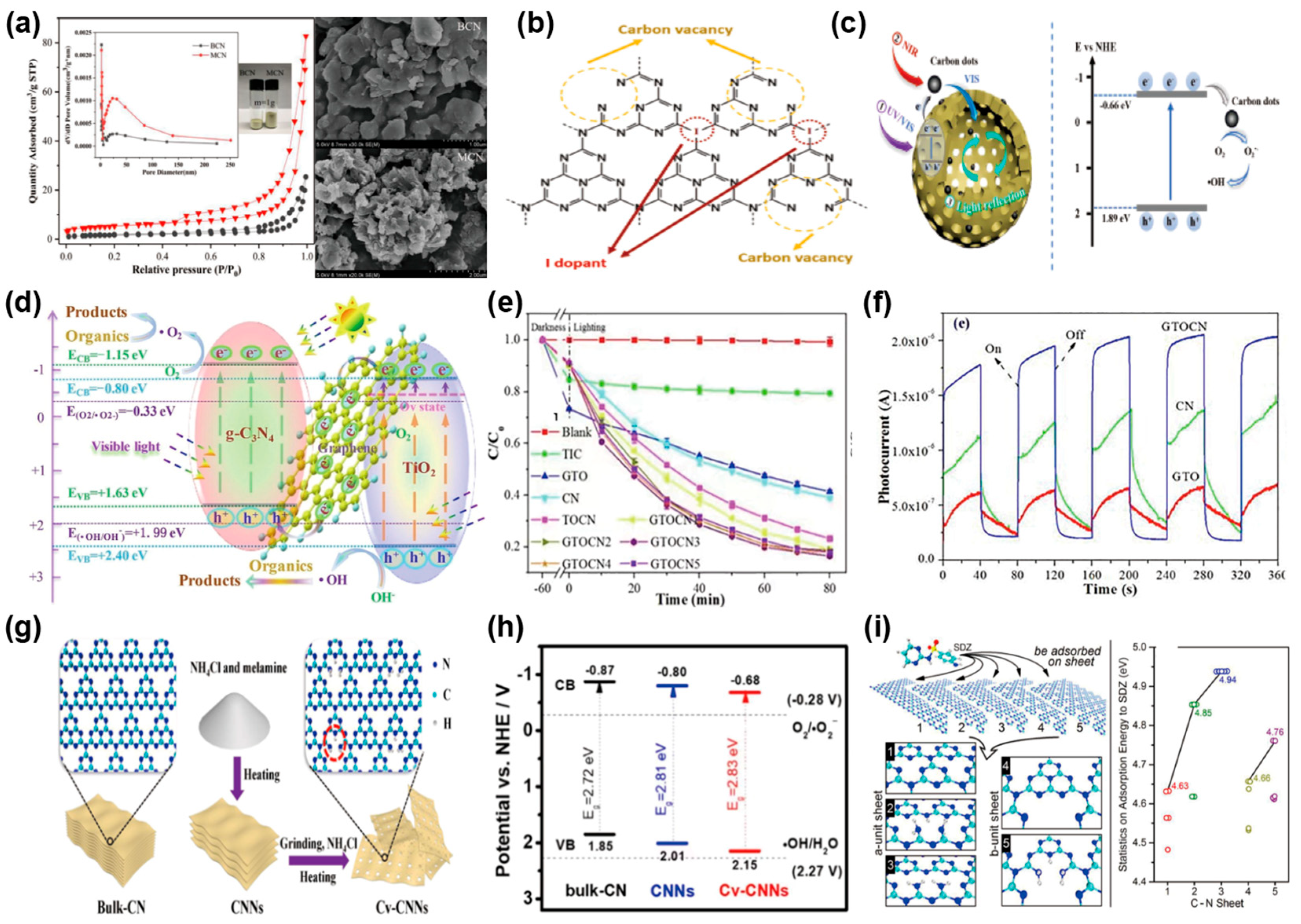 - Presently, the charge transfer mechanisms in g-C3N4-based materials are not fully understood, and further studies are required to explore this process to improve their photocatalytic efficiency. Combining DFT calculations and experimental characterization methods to verify and optimize the charge transfer process in g-C3N4-based materials will provide a theoretical foundation for developing more efficient photocatalysts and precisely controlling photocatalytic reaction pathways.