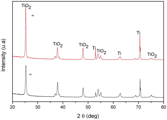 The photocatalyst that was recycled five times was analyzed by XRD before and after the recycling step. The XRD patterns of TiO2 NTs before and after photodegradation (Figure 19) show that the photocatalyst preserves the anatase phase of TiO2 (in good agreement with JCPDS No. 894921). The presence of sharp XRD diffraction peaks shows that the nanotubes conserve high crystallinity after a certain number of photocatalytic cycles. Based on the above results, the TiO2 NTs have satisfactory recycling stability and performance.