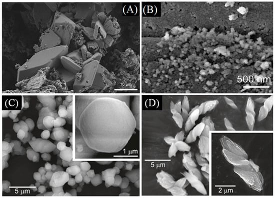 | Ikaite | 0.1 M CaCl2 + 0.1 M K2CO3 + 0.04 M KOH; T = 0 °C [60] | 0.02 M Na2CO3 + 0.02 M CaCl2; pH = 12.8; T = 0–4 °C; t = 20–25 min [21] | 2.5 M CaCl2·2H2O + 0.5 M NaHCO3 + 0.5 M NaOH + seawater-similar mixture (presence of, e.g., PO43−), T = 0 and 4 °C [73] |