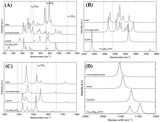| Modes | Ikaite [136] | MHC [136] | ACC (Hydrated) | CCHH [20] | ||||