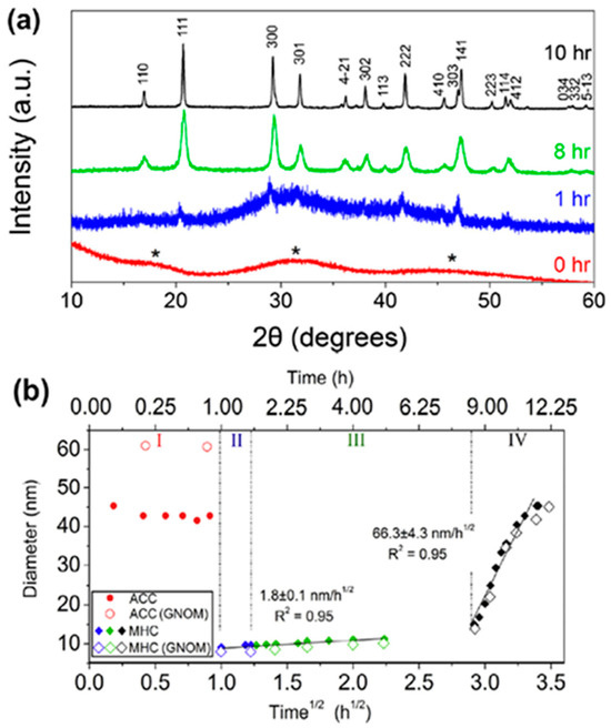 - Von Euw, S.; Azaïs, T.; Manichev, V.; Laurent, G.; Pehau-Arnaudet, G.; Rivers, M.; Murali, N.; Kelly, D.J.; Falkowski, P.G. Solid-State Phase Transformation and Self-Assembly of Amorphous Nanoparticles into Higher-Order Mineral Structures. J. Am. Chem. Soc. 2020, 142, 12811–12825. [Google Scholar] [CrossRef]