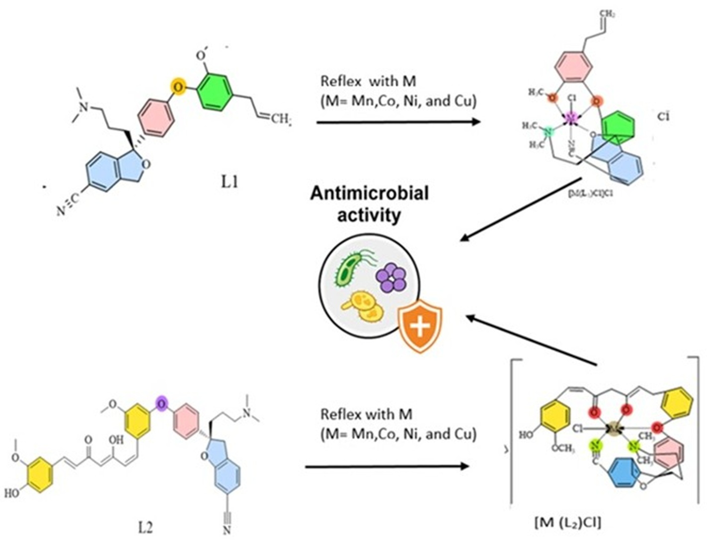 | [Mn(L1)Cl]Cl | 2902 | — | 1505 | 1417 | 1105 | 1663 | 447 | 557 |