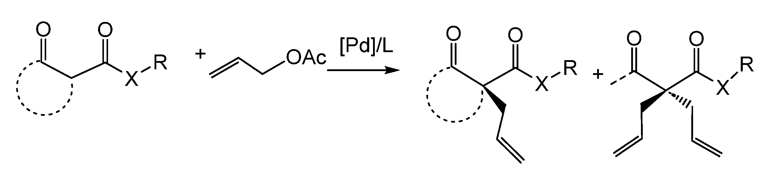 - Cera, G.; Maestri, G. Palladium/Brønsted Acid Catalysis for Hydrofunctionalizations of Alkynes: From Tsuji-Trost Allylations to Stereoselective Methodologies. ChemCatChem 2022, 14, e202200295. [Google Scholar] [CrossRef]