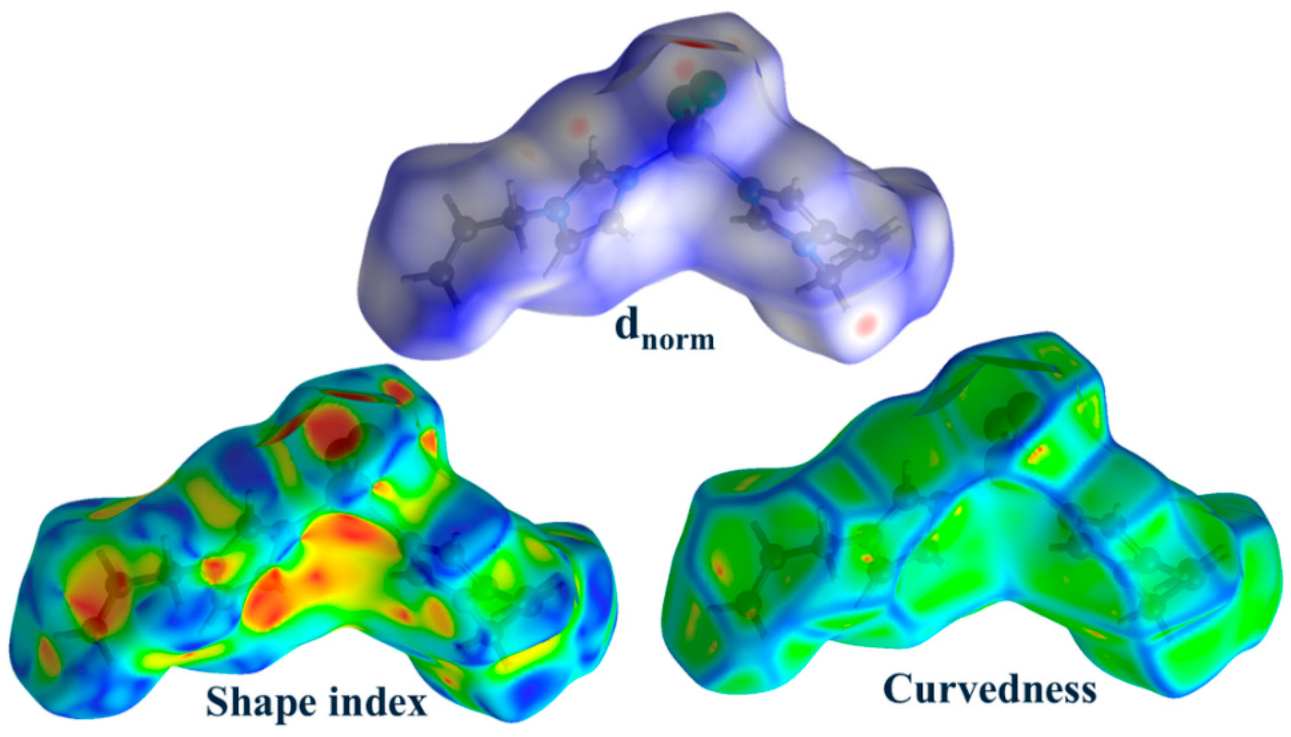 - Spackman, P.R.; Turner, M.J.; McKinnon, J.J.; Wolff, S.K.; Grimwood, D.J.; Jayatilaka, D.; Spackman, M.A. CrystalExplorer: A Program for Hirshfeld Surface Analysis, Visualization and Quantitative Analysis of Molecular Crystals. J. Appl. Crystallogr. 2021, 54, 1006–1011. [Google Scholar] [CrossRef] [PubMed]