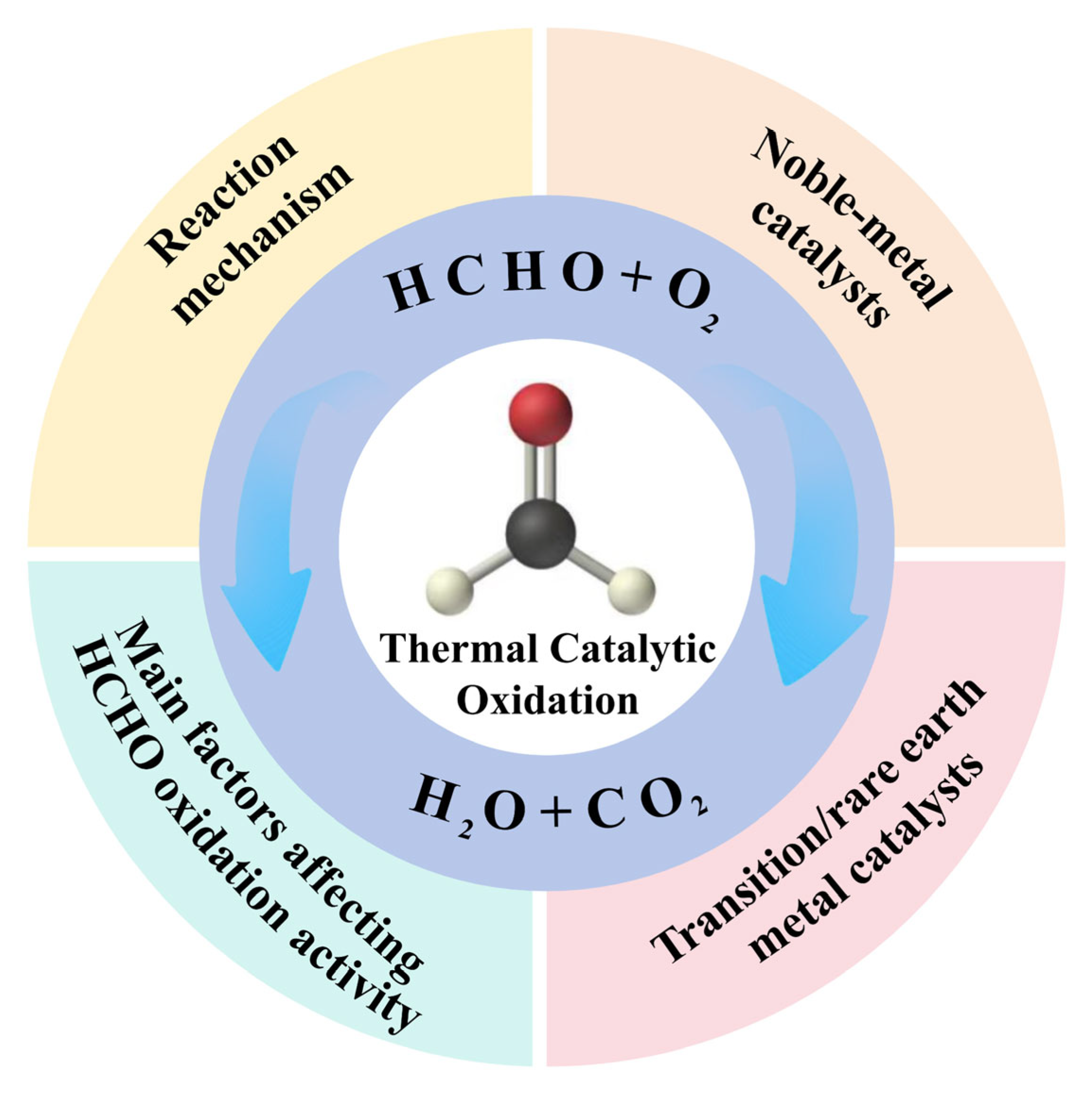 This review provides the latest research in the catalytic oxidation of HCHO over noble metal and Transition oxide catalysts, and the factors affecting the catalytic performance of the catalyst and mechanisms have been discussed. Future research on catalyst development should focus on exploring novel materials and synthesis methods to improve the catalytic performance. For example, designing catalysts with hierarchical structures, core-shell architectures, or nano-sized particles can enhance the surface area and active sites. Additionally, combining experimental studies with theoretical calculations can provide deeper insights into the reaction mechanisms and guide the rational design of catalysts.