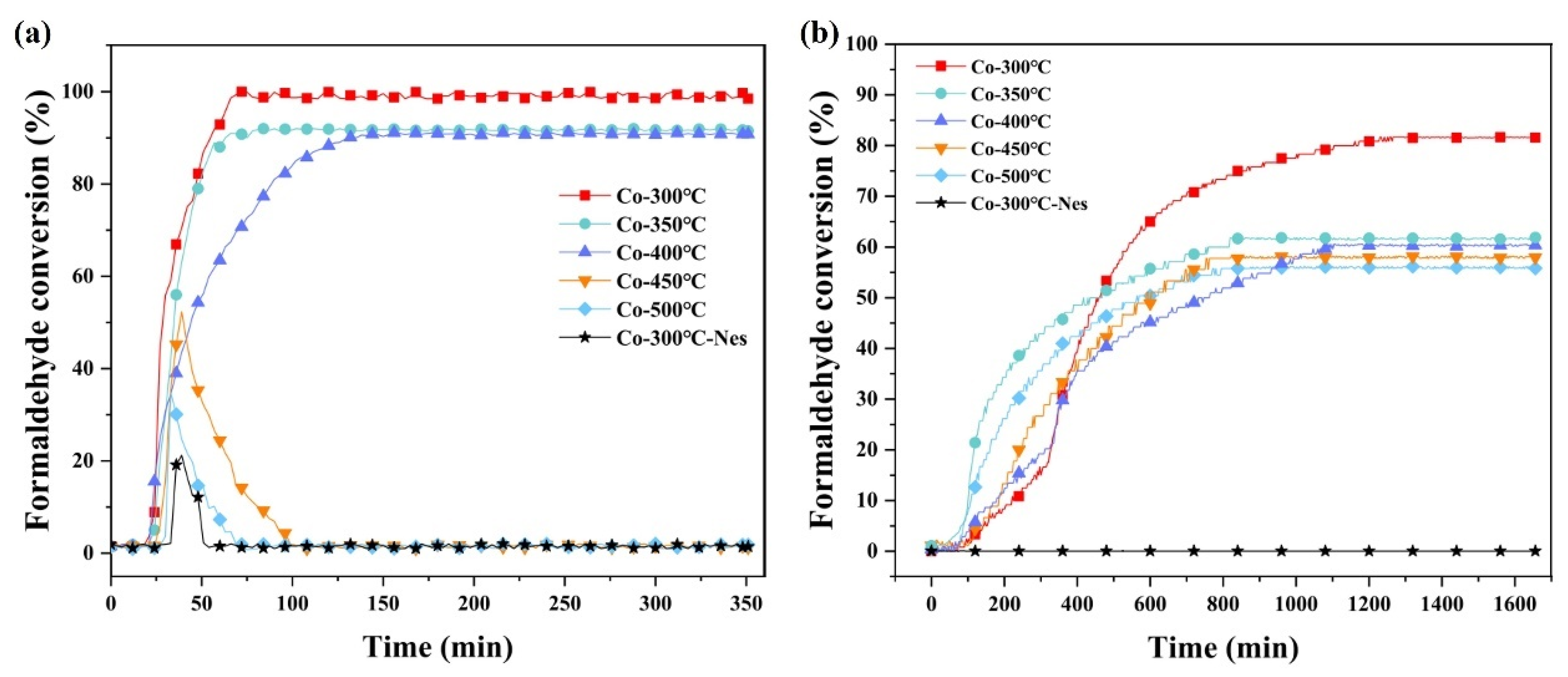 • The amount of catalyst used is generally appropriate at 100–200 mg, and an increase in dosage does not have a particularly significant impact on the catalytic oxidation efficiency of formaldehyde