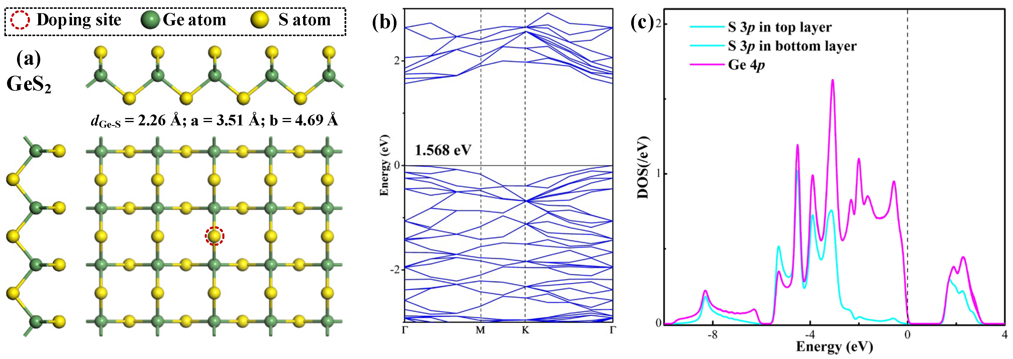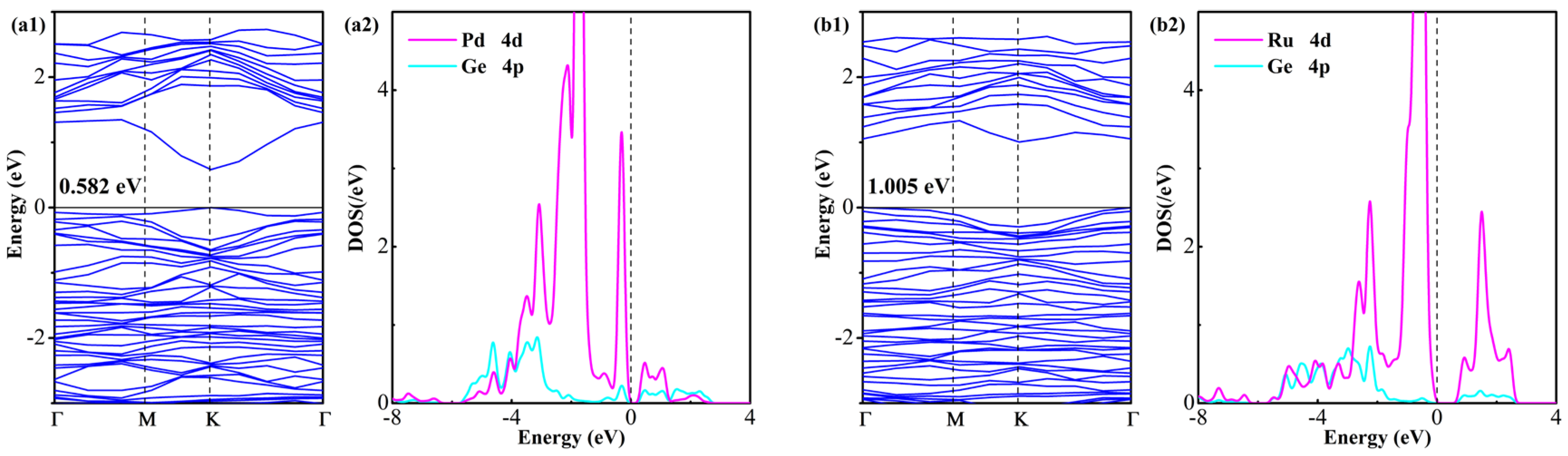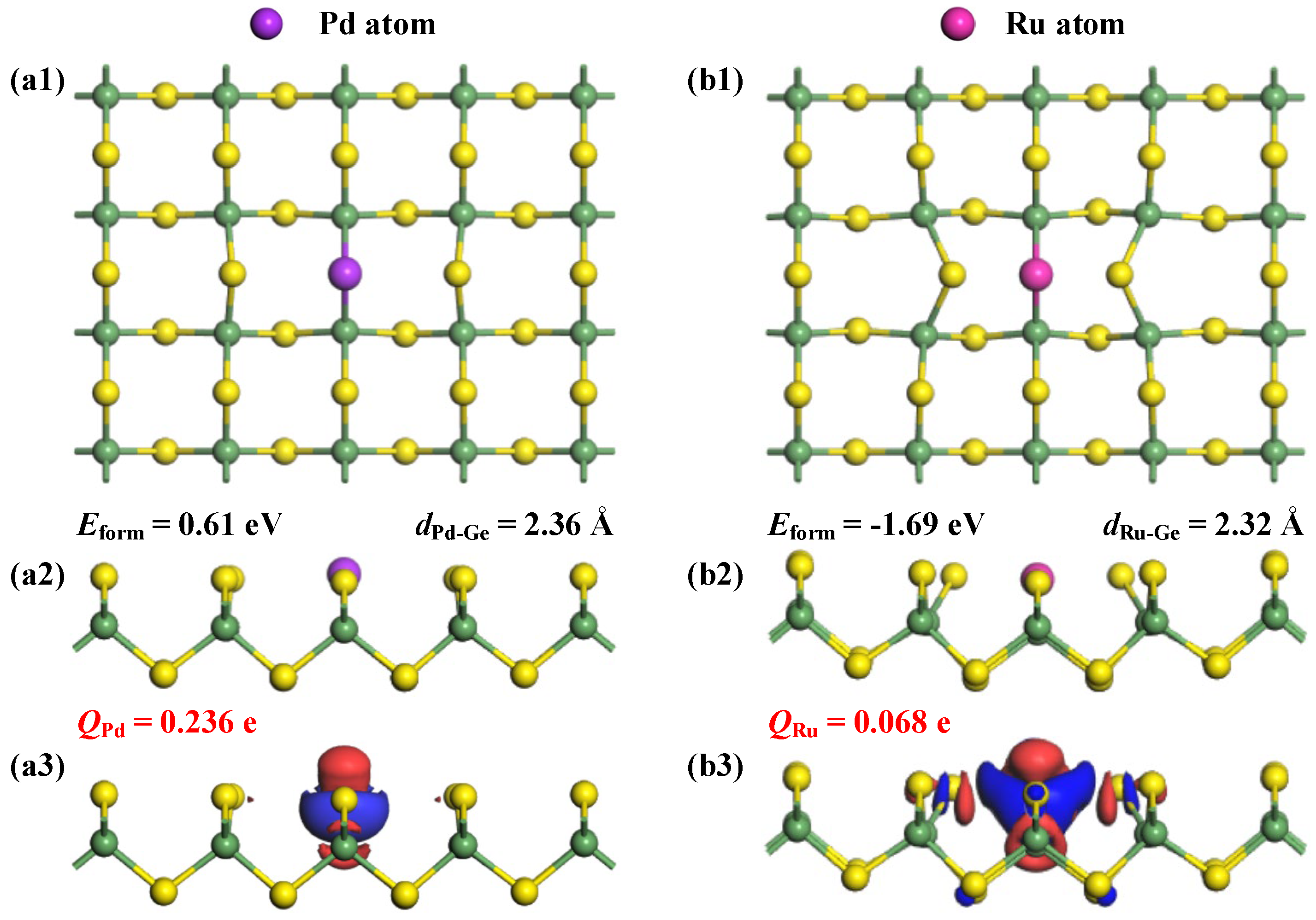 2.2. Pd- and Ru-Doping Properties Within the GeS2 Monolayer