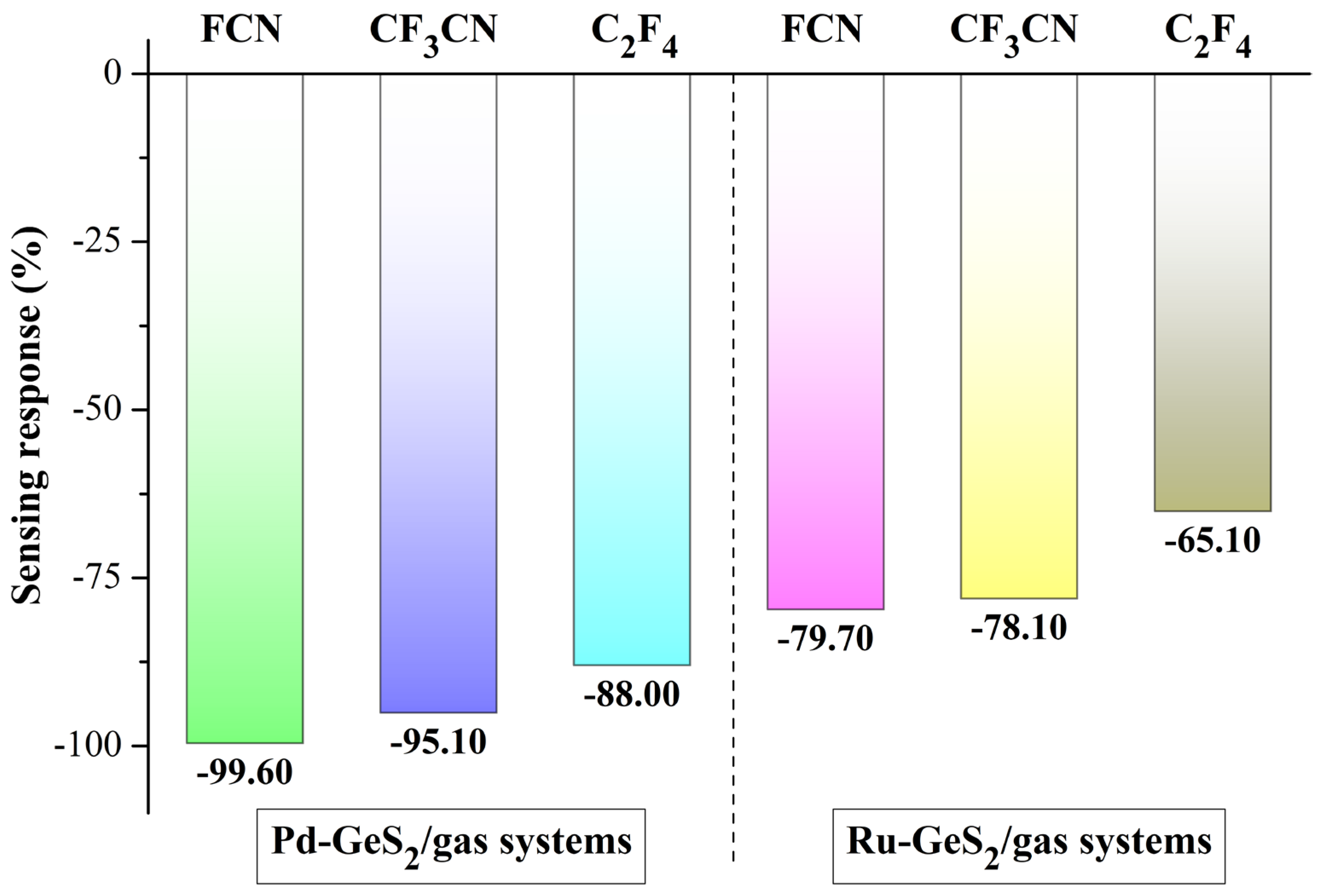 2.3.2. Analysis of Ru-GeS2/Gas Systems