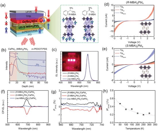 - Chen, C.; Gao, L.; Gao, W.; Ge, C.; Du, X.; Li, Z.; Yang, Y.; Niu, G.; Tang, J. Circularly polarized light detection using chiral hybrid perovskite. Nat. Commun. 2019, 10, 1927. [Google Scholar] [CrossRef]