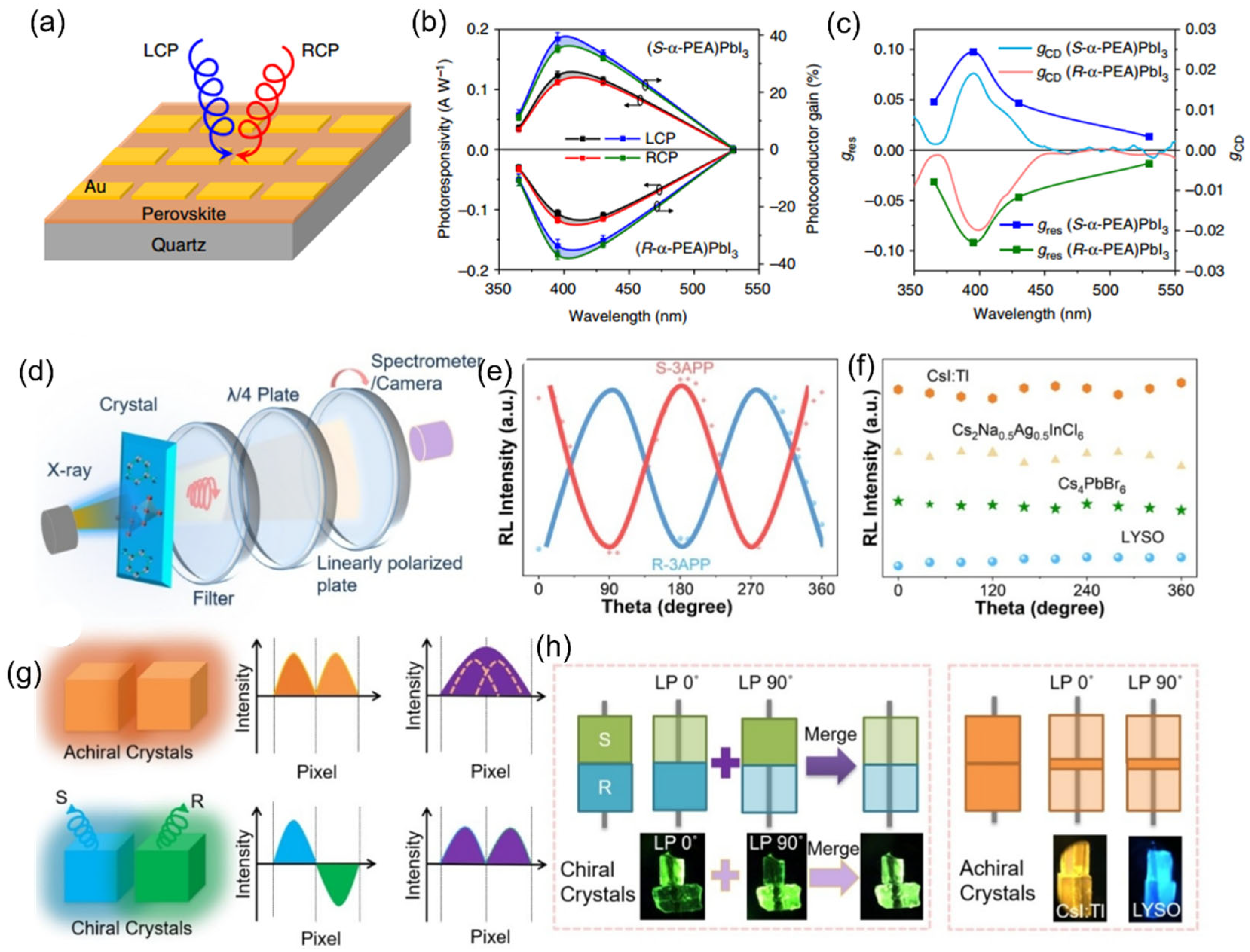 46. Chen, C.; Gao, L.; Gao, W.; Ge, C.; Du, X.; Li, Z.; Yang, Y.; Niu, G.; Tang, J. Circularly polarized light detection using chiral hybrid perovskite. Nat. Commun. 2019, 10, 1927. [Google Scholar] [CrossRef]