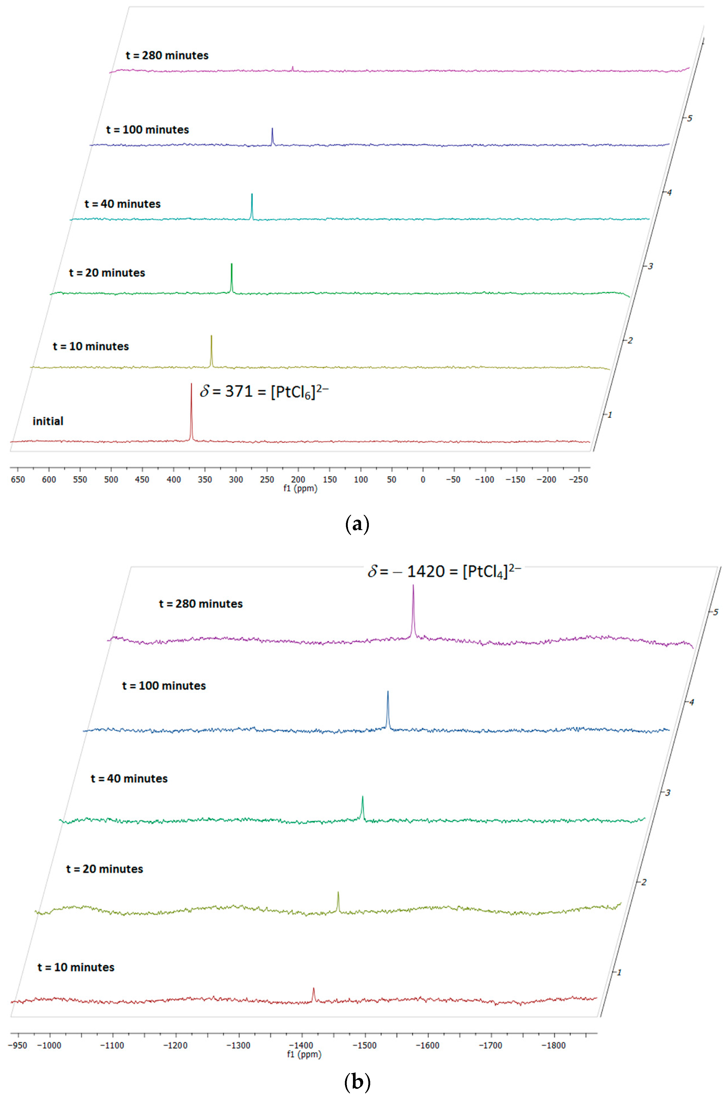 - Pregosin, P.S. Platinum-195 Nuclear Magnetic Resonance. Coord. Chem. Rev. 1982, 44, 247–291. [Google Scholar] [CrossRef]