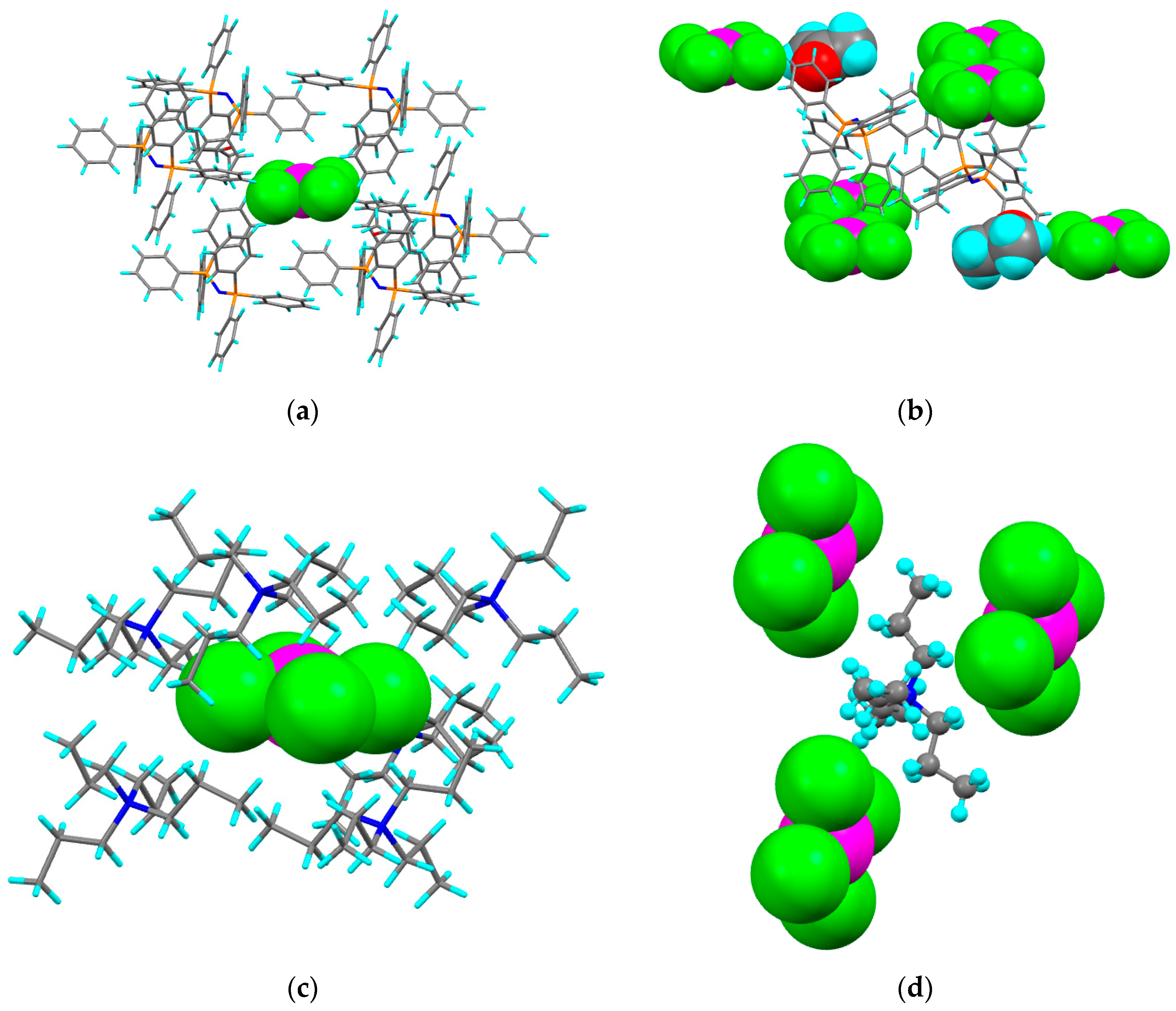 2.3.2. Alkylammonium Cations—[Pr4N]2[PtCl6], [Bu4N]2[PtCl6] and [Pe4N]2[PtCl6]