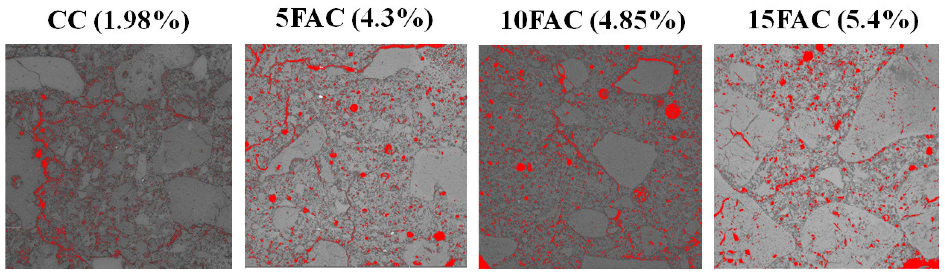 • 5FAC, 10FAC, and 15FAC: Castables containing 5, 10, and 15 wt.% fly ash, respectively.