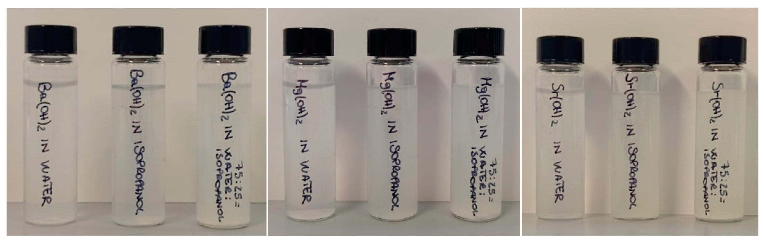 3.2. Synthesis of Barium, Strontium, and Magnesium Hydroxide Nanoparticles