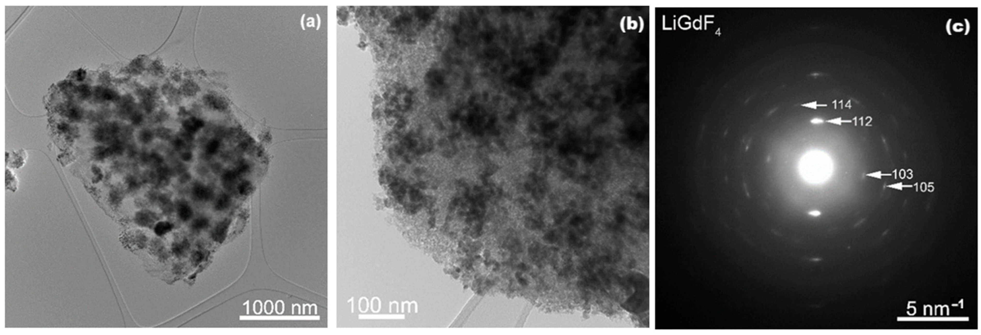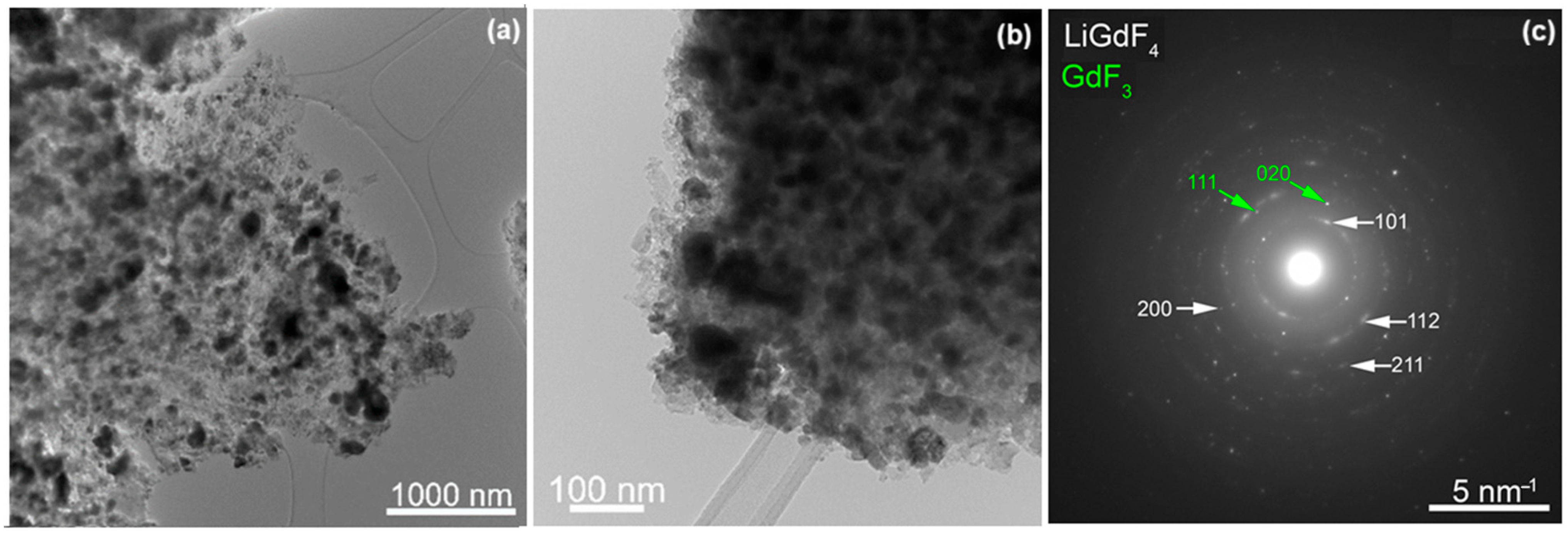 - Chuai, X.; Liu, Z.; Liu, Y.; He, C.; Qin, W. Enhanced Near-Infrared Upconversion Luminescence of GdF3:Yb3+, Tm3+ by Li+. J. Nanosci. Nanotechnol. 2014, 14, 3687–3689. [Google Scholar] [CrossRef] [PubMed]